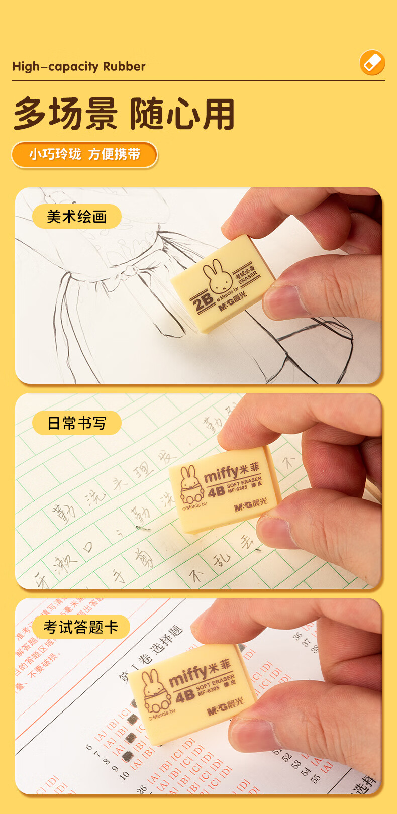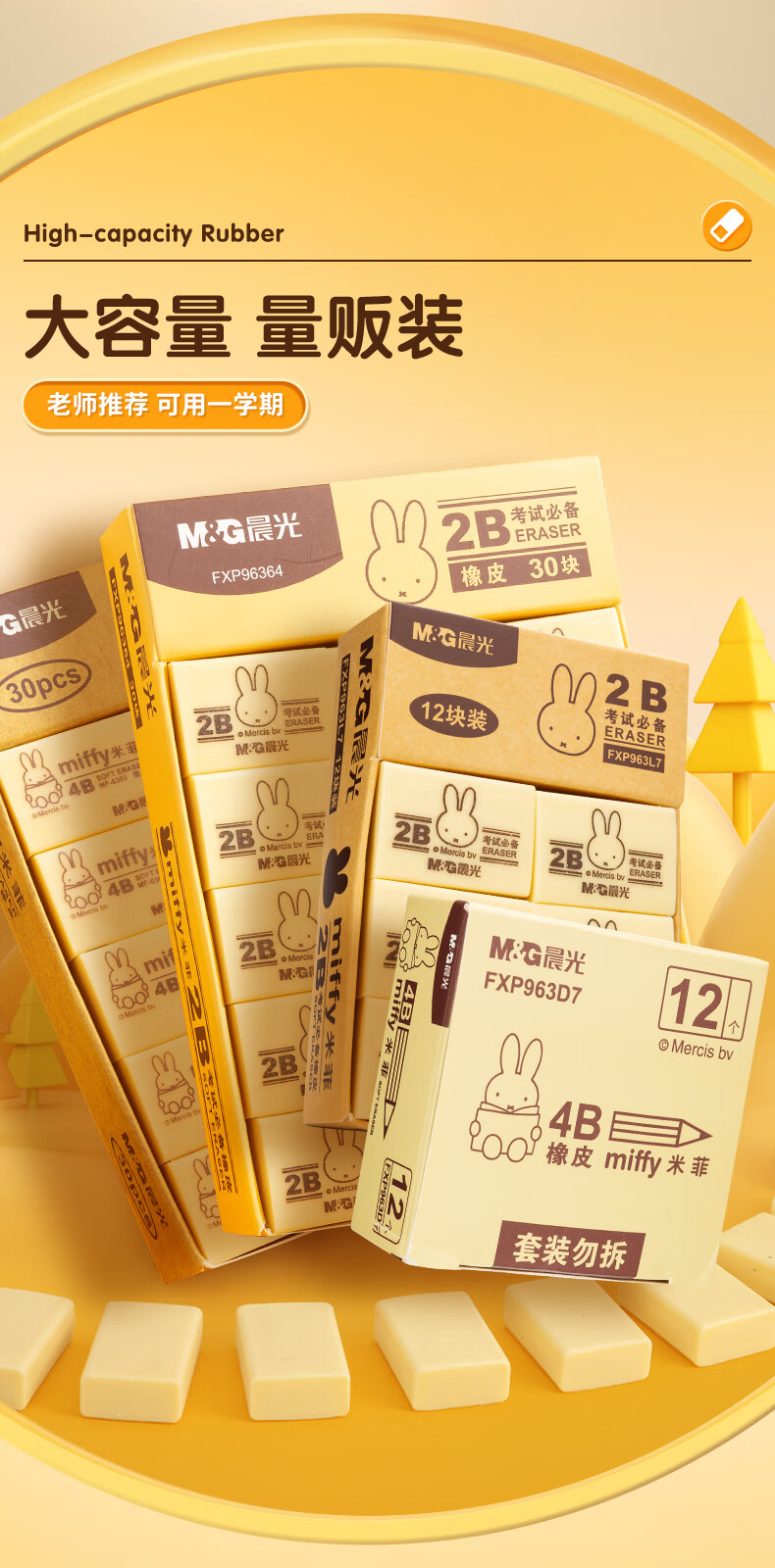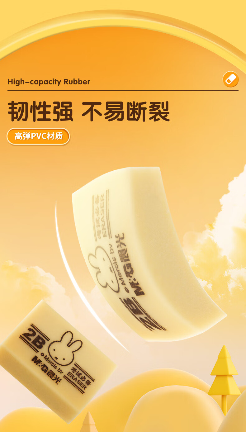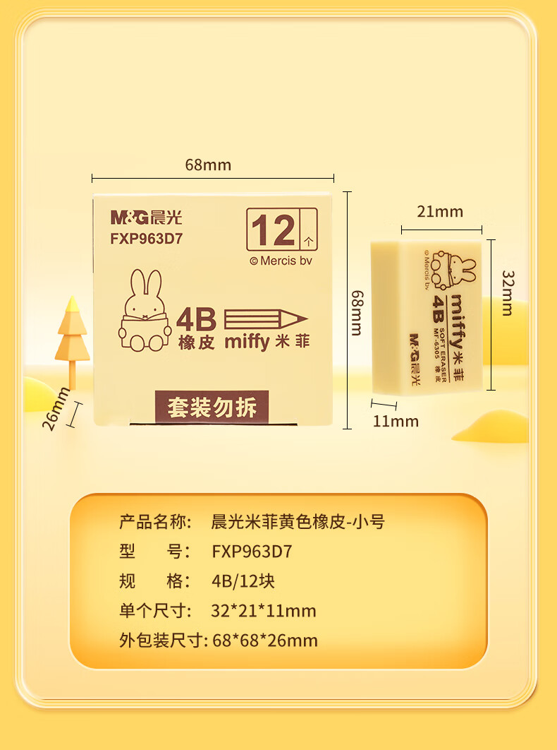 晨光(M&G)文具4B黄色小号橡皮 学生美术绘图考试橡皮擦 米菲系列可爱橡皮擦 30块/盒MF6305 自营