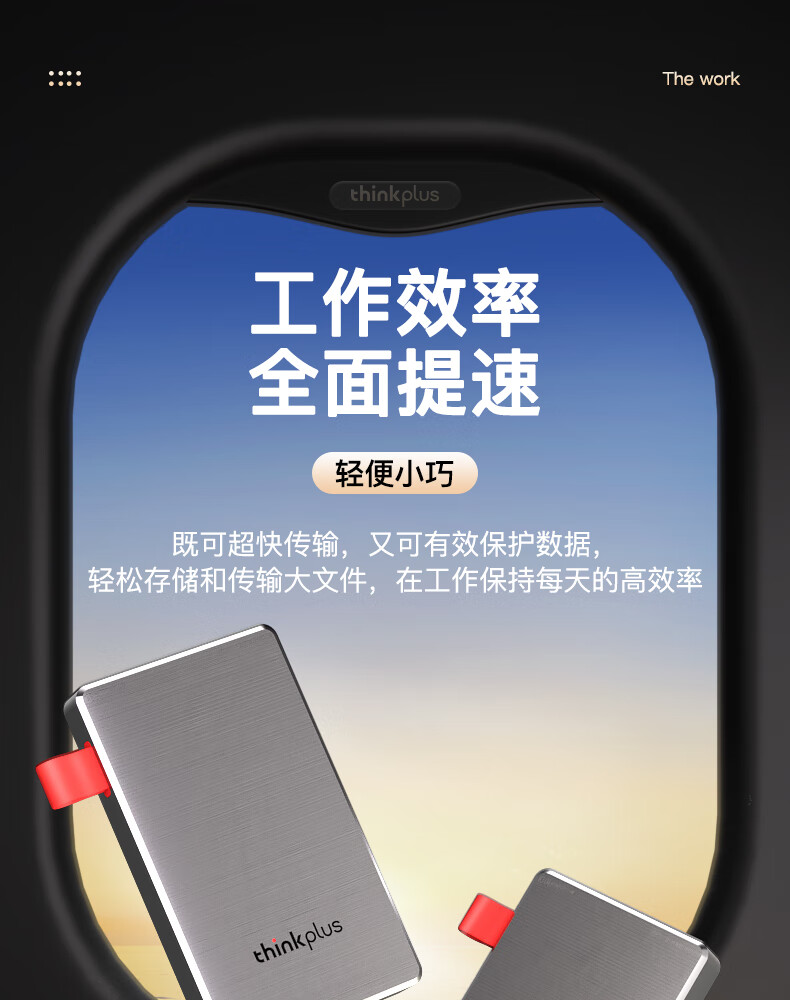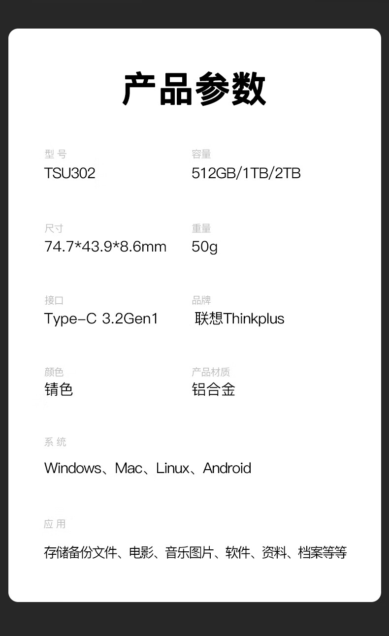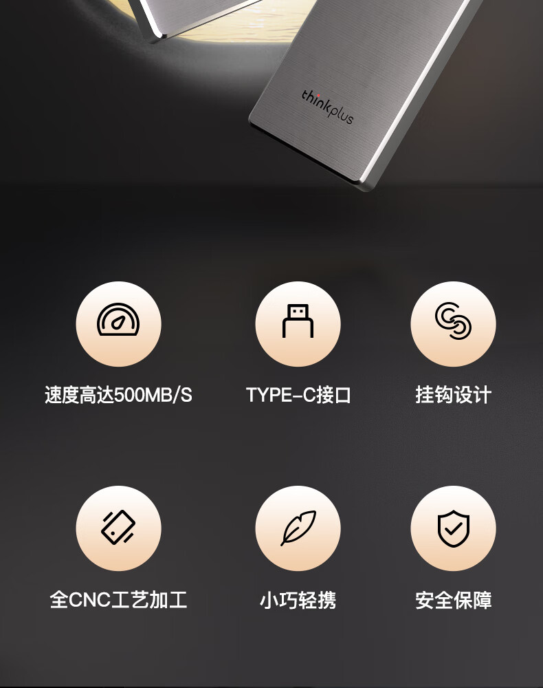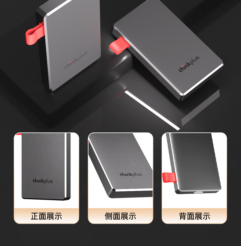 联想出品 ThinkPlus 1TB移动固态硬盘Type-C USB3.2高速传输540MB/s轻薄便携手机直连备份平板电脑外置存储器