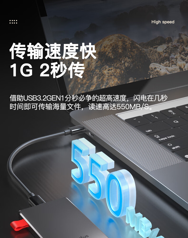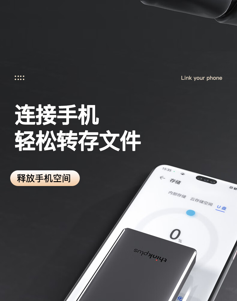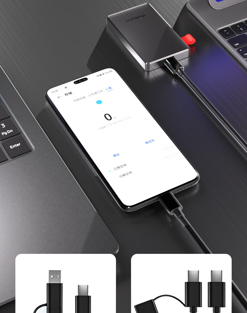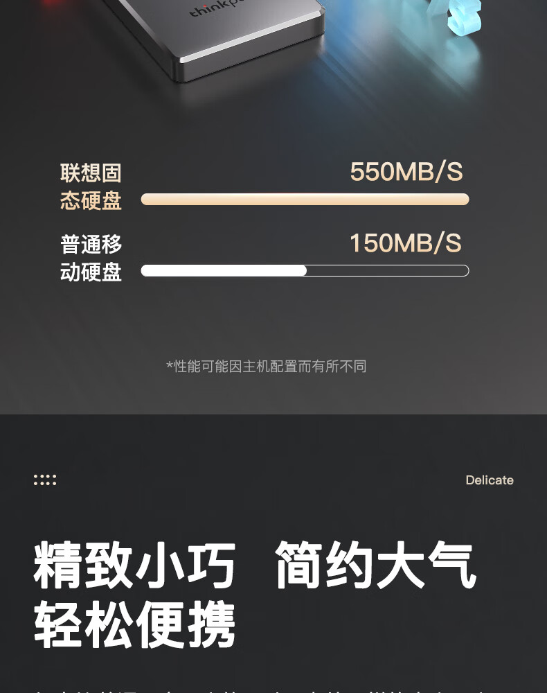 联想出品 ThinkPlus 1TB移动固态硬盘Type-C USB3.2高速传输540MB/s轻薄便携手机直连备份平板电脑外置存储器