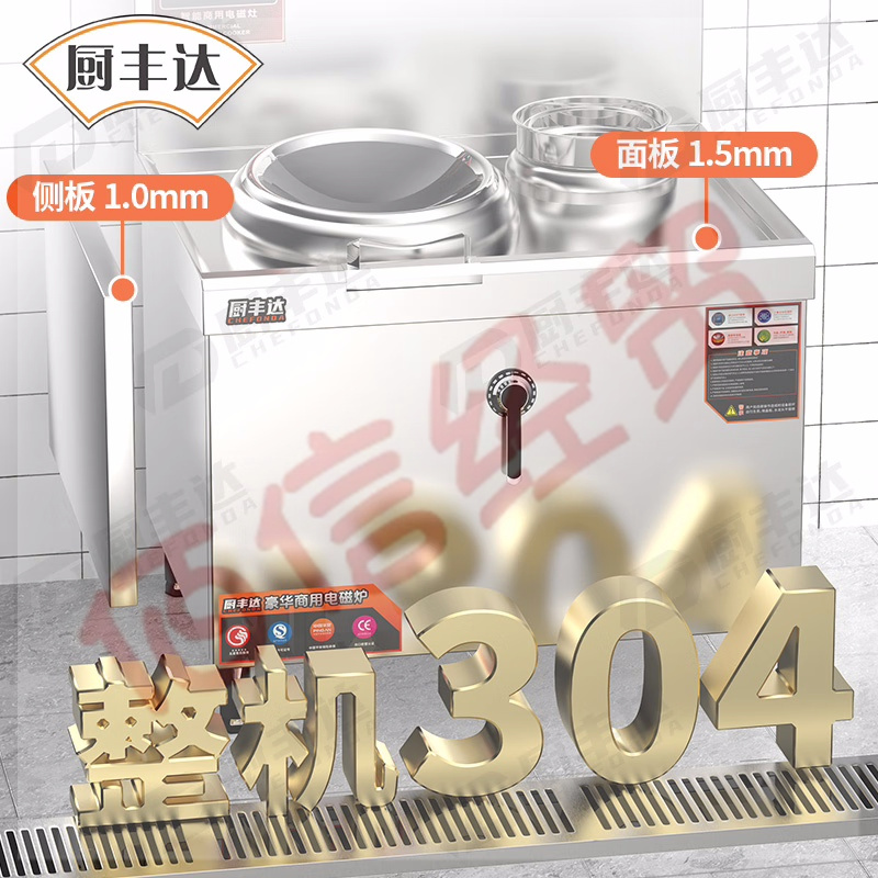 厨丰达 商用电磁炉大锅灶食堂电磁灶大功率炒菜灶台饭店酒店学校厨房凹面 304双头单尾15kw*2 自营