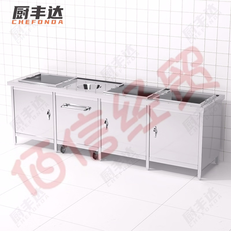 厨丰达 不锈钢收残车 餐具碗碟垃圾桶饭店餐厅残食台 移动食物残渣收集台-1.0厚度201材质240*70*80+15(其它型号咨询客服) 自营