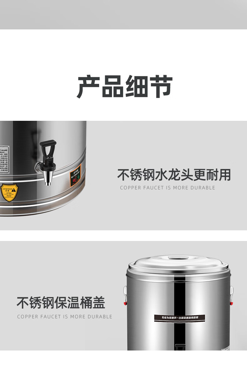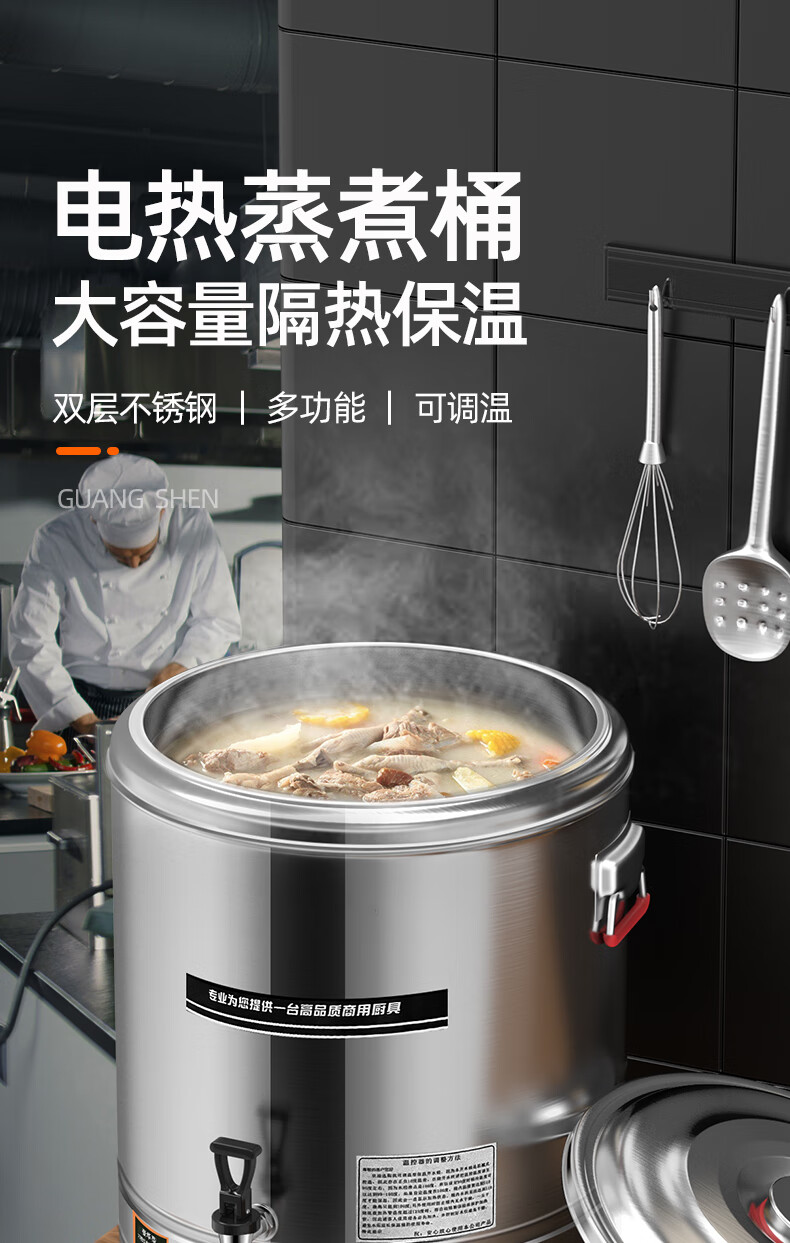 厨丰达电热开水桶蒸煮桶商用开水器烧水桶保温桶烧水机开水机商用加热水机不锈钢蒸煮桶【60升/时】(其它型号咨询客服) 自营