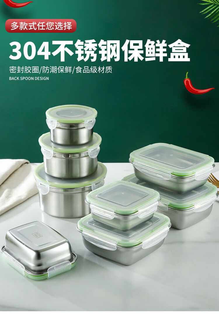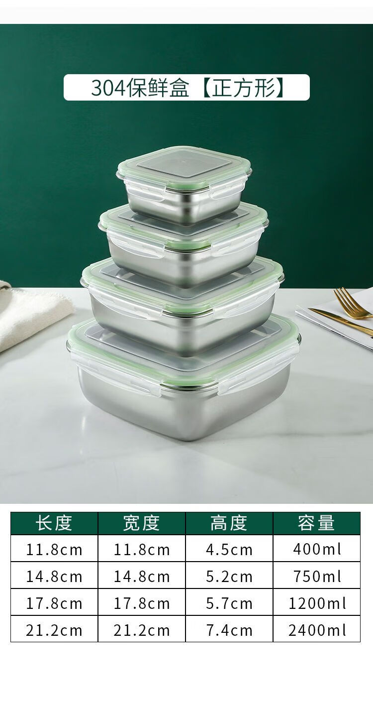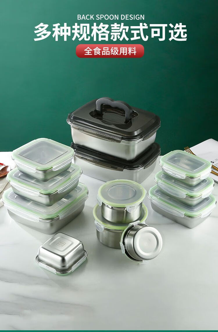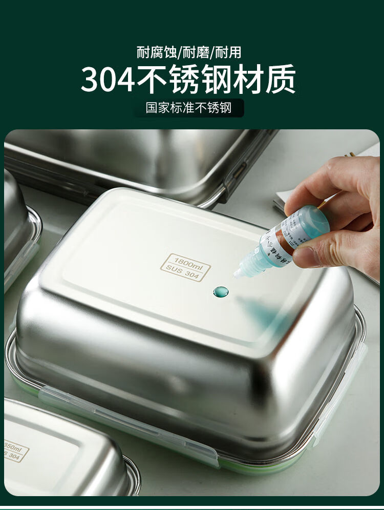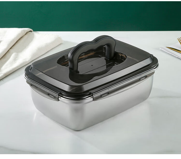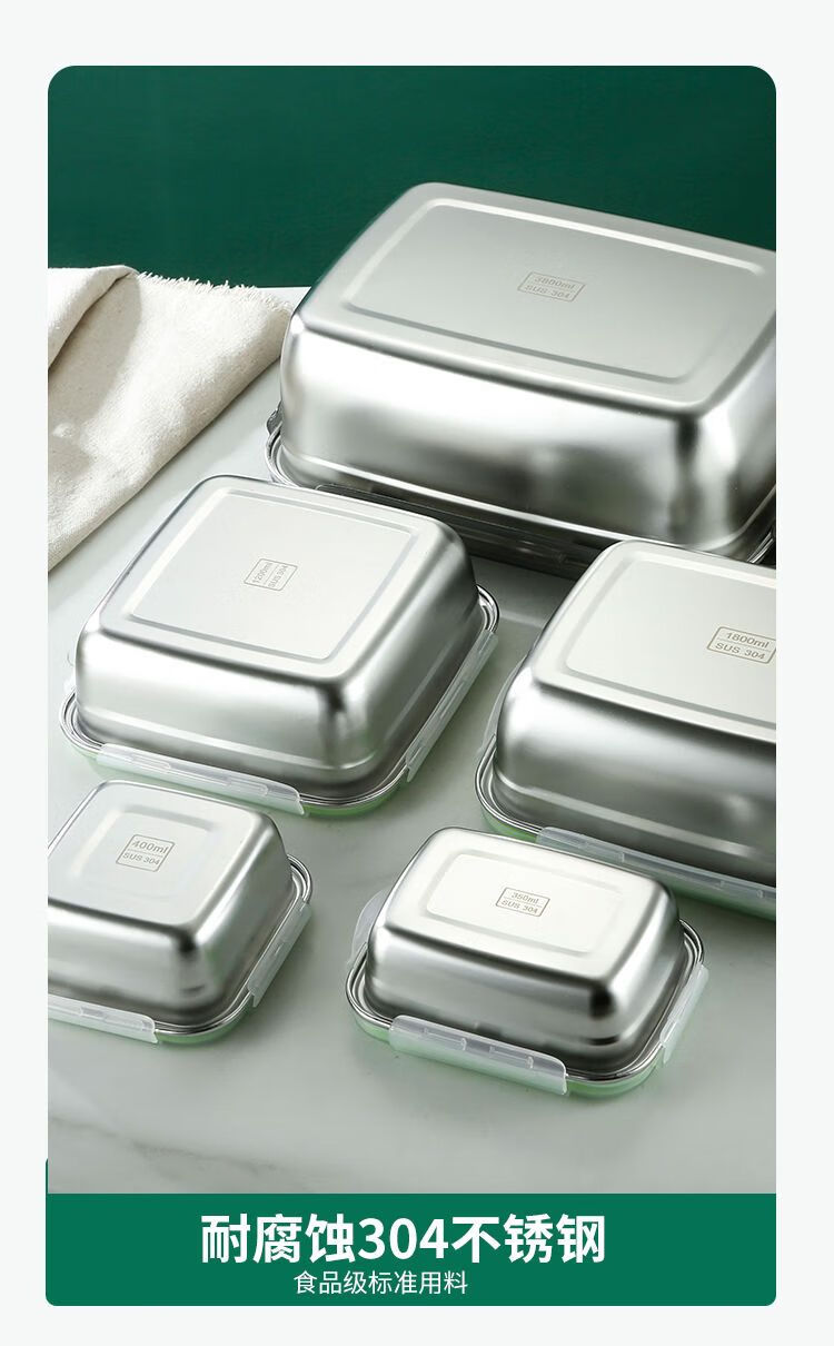 厨丰达食品密封保鲜盒商用304不锈钢方盆带盖保鲜锁鲜密封不串味冰箱配件长方形3800ml(其它型号咨询客服)