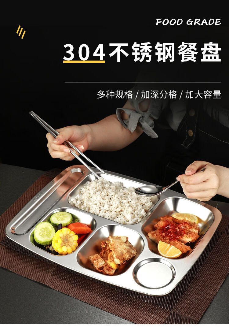 厨丰达304不锈钢餐盘成人饭盒5格加深加厚分格快餐盘儿童学生餐盒-经典款大六格/8两(其它型号咨询客服)