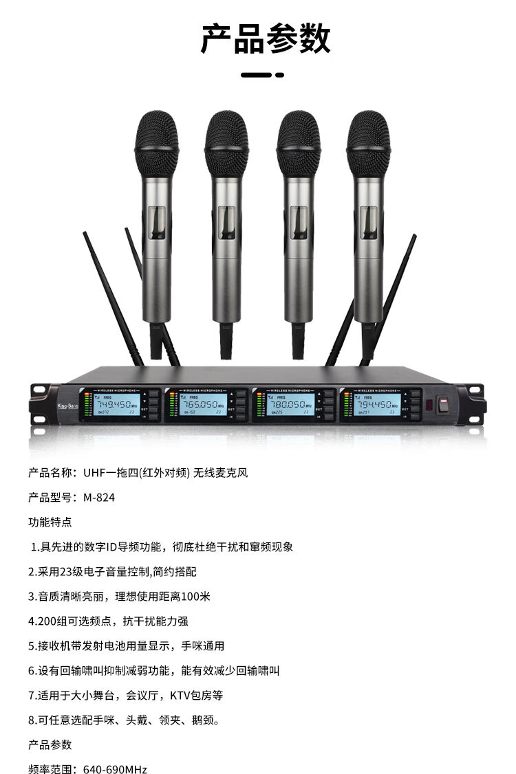 King-Bang京邦M-824UHF一拖四红外对频无线麦克风 自营