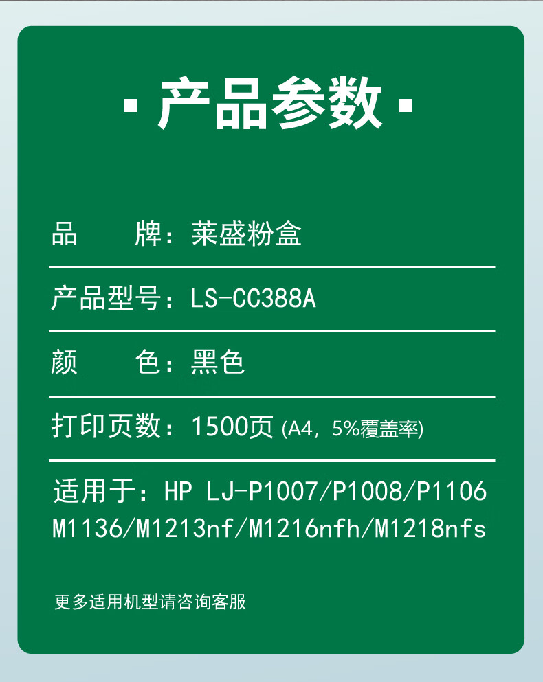莱盛LS-CC388A硒鼓黑色适用于HPLJ-P1007/P1008/P1106/P1108/M202,M1136/M1213nf/M1216nfh 自营