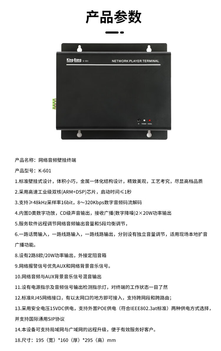 King-Bang京邦K-601网络音频壁挂终端 自营