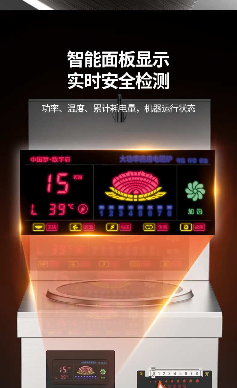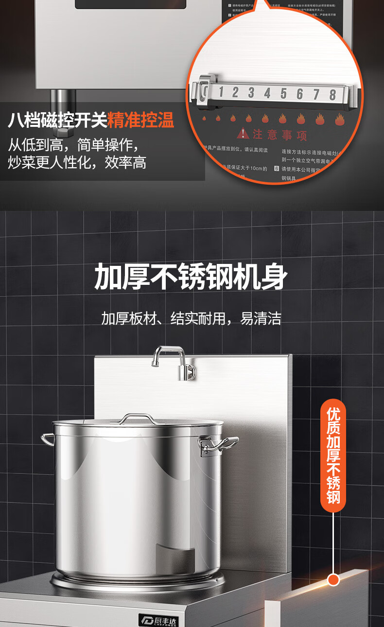 厨丰达大功率商用电磁炉304商用电磁灶大锅灶学校单位食堂专用猛火电炒锅电磁电灶台12kw一价全包