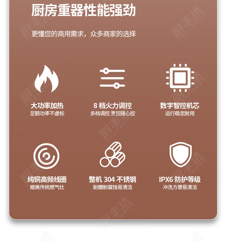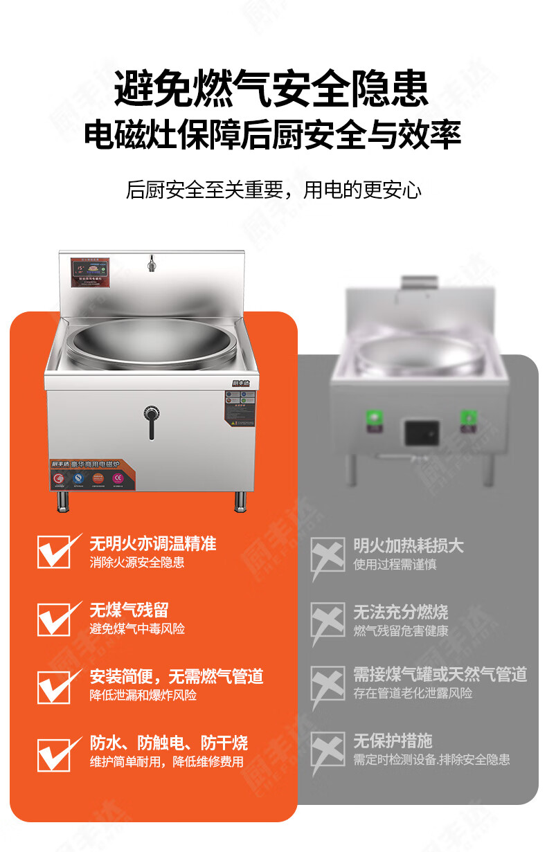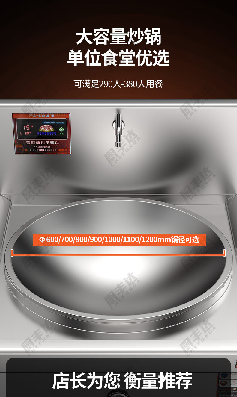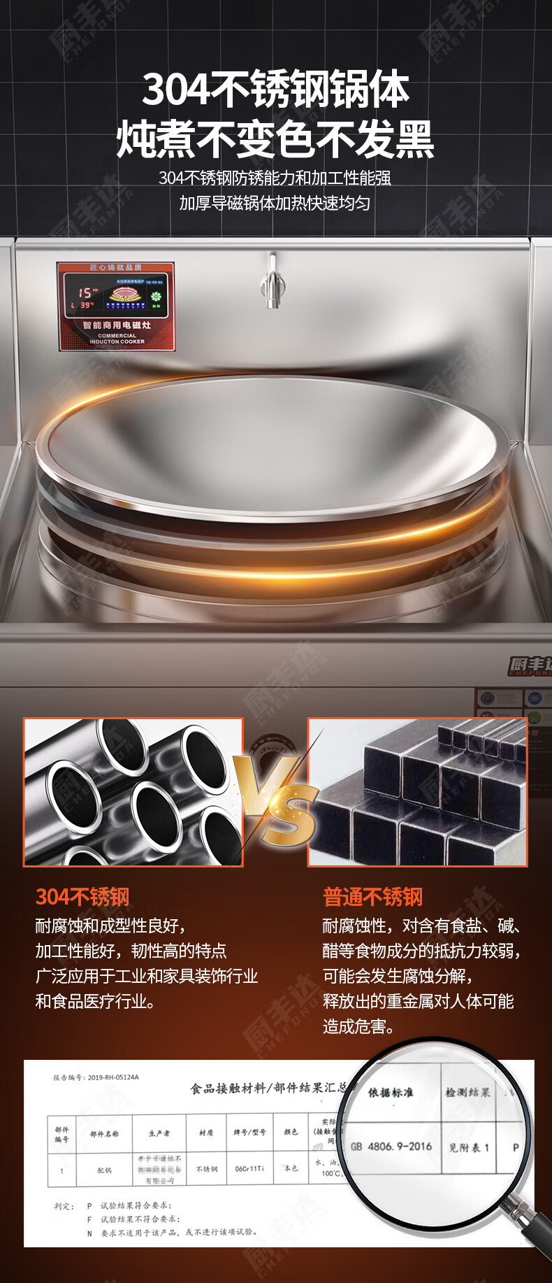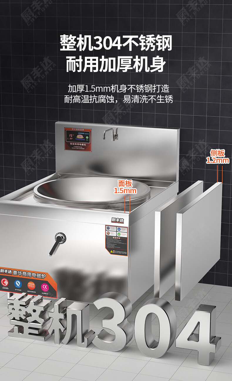 厨丰达大功率商用电磁炉304商用电磁灶大锅灶学校单位食堂专用猛火电炒锅电磁电灶台12kw一价全包