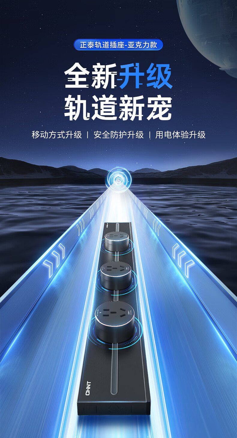 正泰明装轨道插座免打孔可移动墙壁插座壁挂式100cm+5个五孔奶油白(其它型号咨询客服) 自营