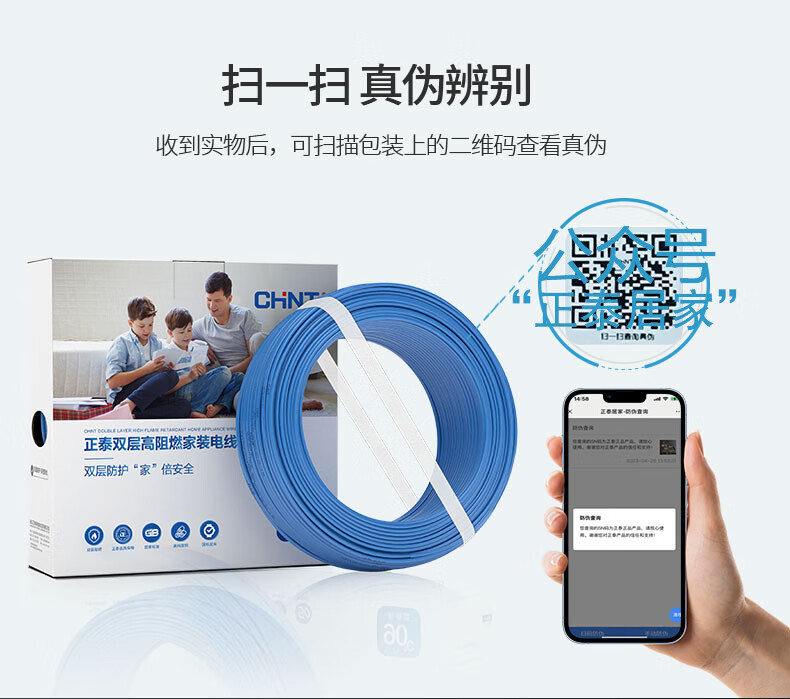 正泰(CHNT)电线电缆JHZ-BV10平方50米双层绝缘环保阻燃国标家装铜芯硬线(其它型号咨询客服) 自营