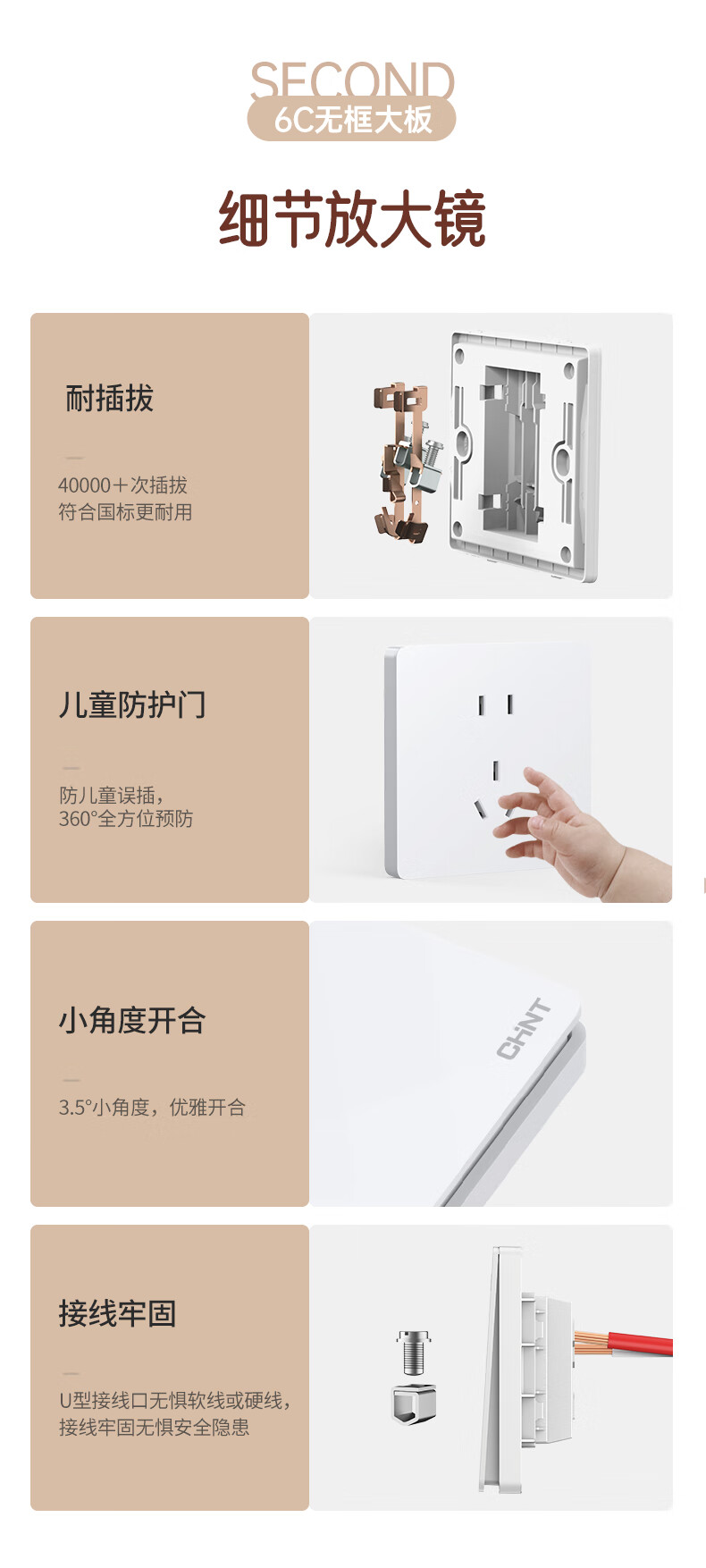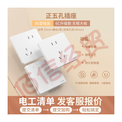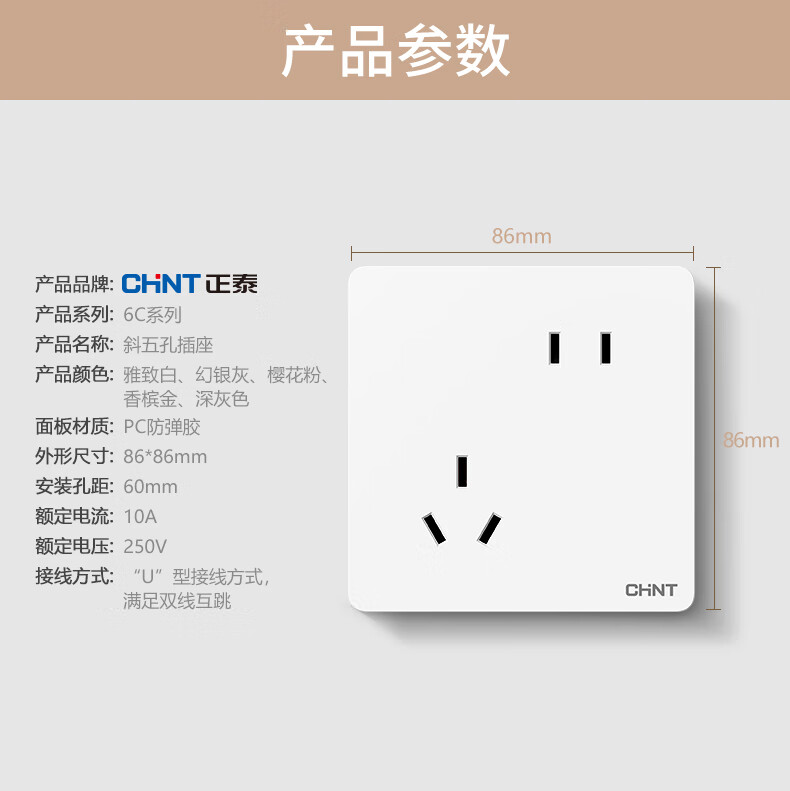正泰(CHNT)开关插座墙壁面板家用86型开关面板五孔插座10只装白色(其它型号咨询客服) 自营