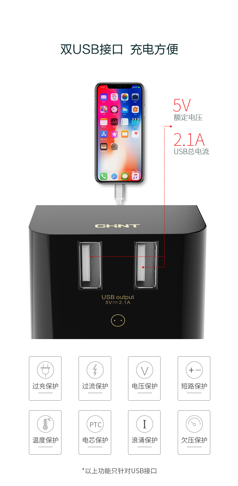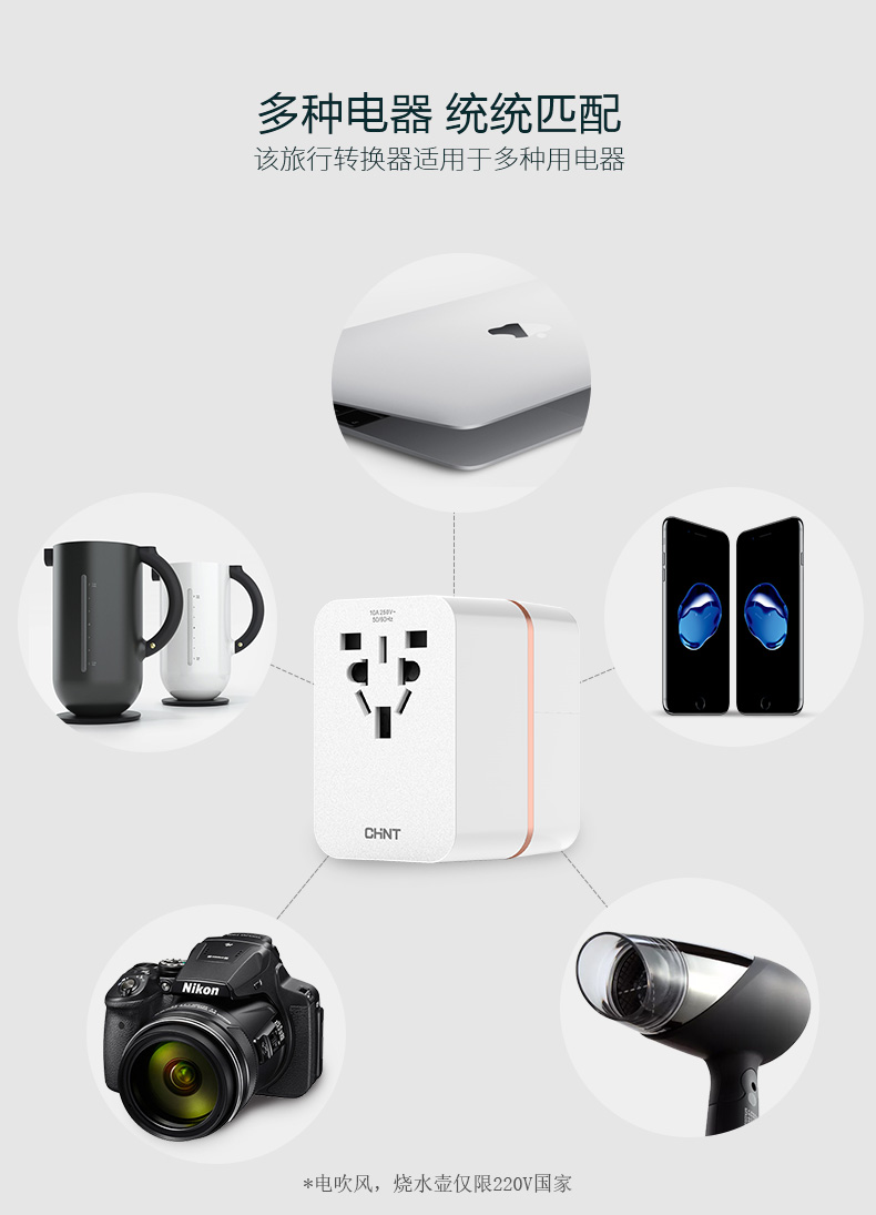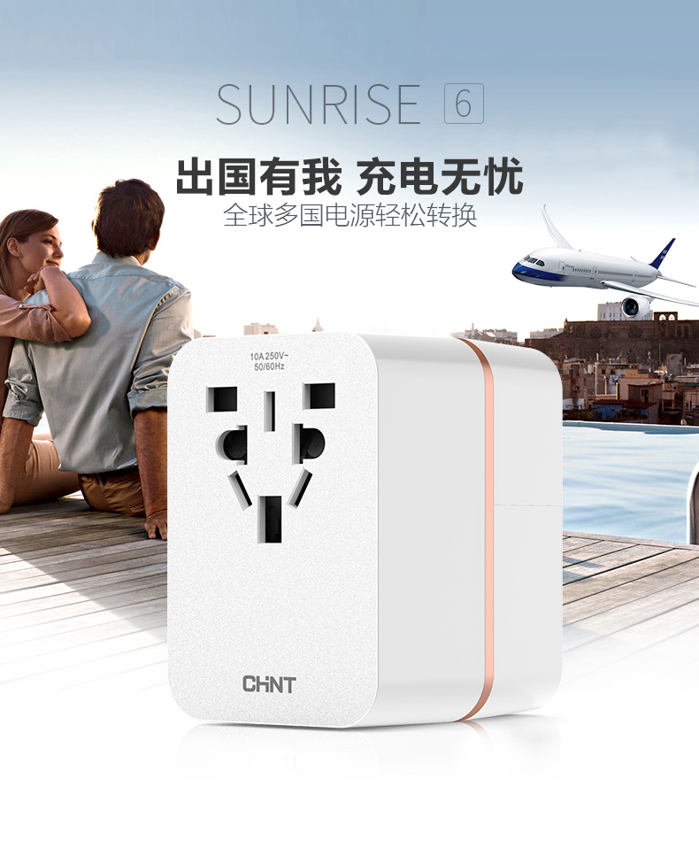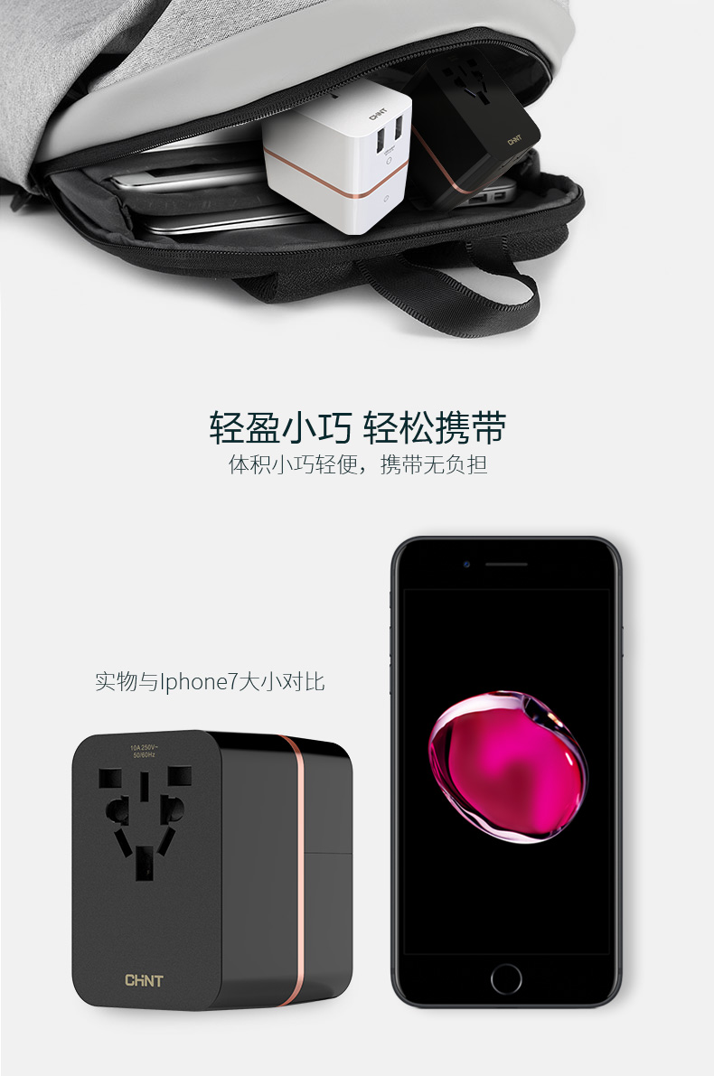 正泰(CHNT)全球通用国际旅行USB插座电源转换器白色带USB 自营