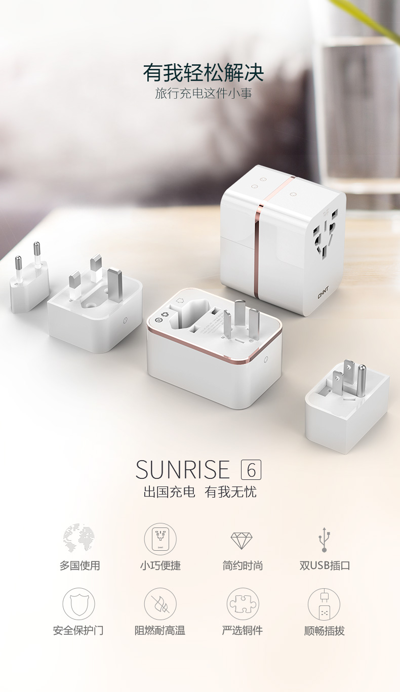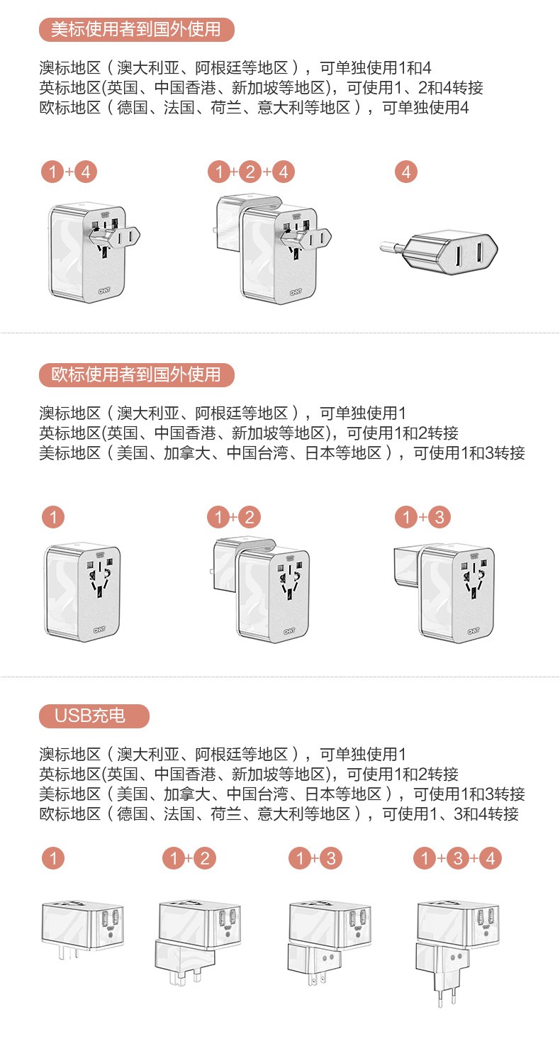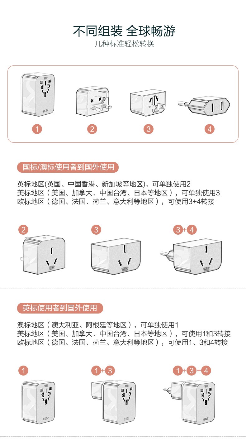 正泰(CHNT)全球通用国际旅行USB插座电源转换器白色带USB 自营