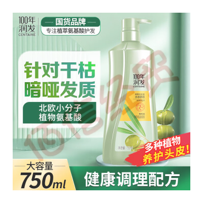 100年润发洗发水(水感柔顺、羽感轻盈)调理氨基酸男女士洗发露液头水膏百年润发750ML(一箱8瓶,整箱售) 自营