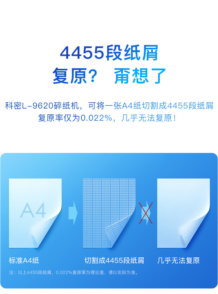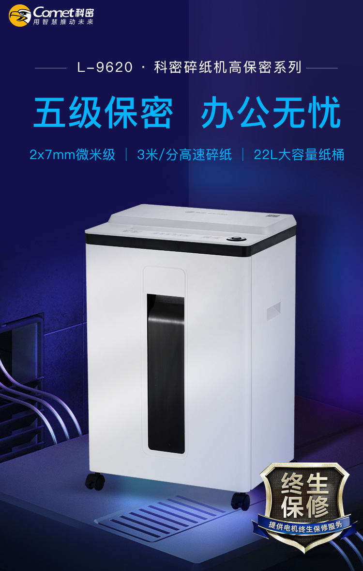 科密(comet)5级保密办公商用碎纸机(单次8张持续30分钟22L)L-9620 自营