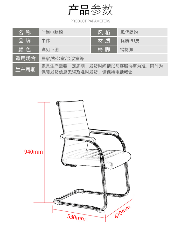 北尧长青电脑椅会议椅家用弓形脚办公椅子洽谈椅会客椅BY-1905
