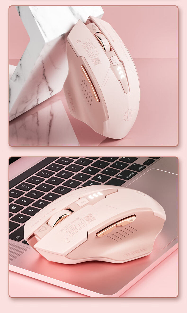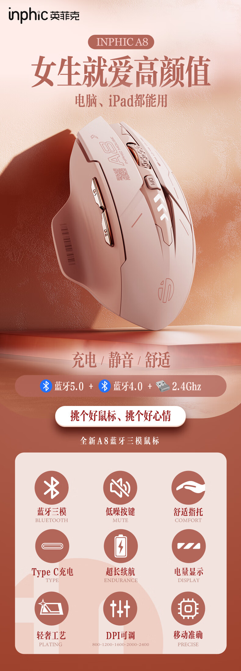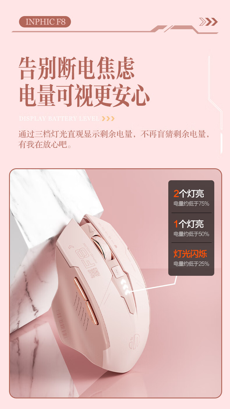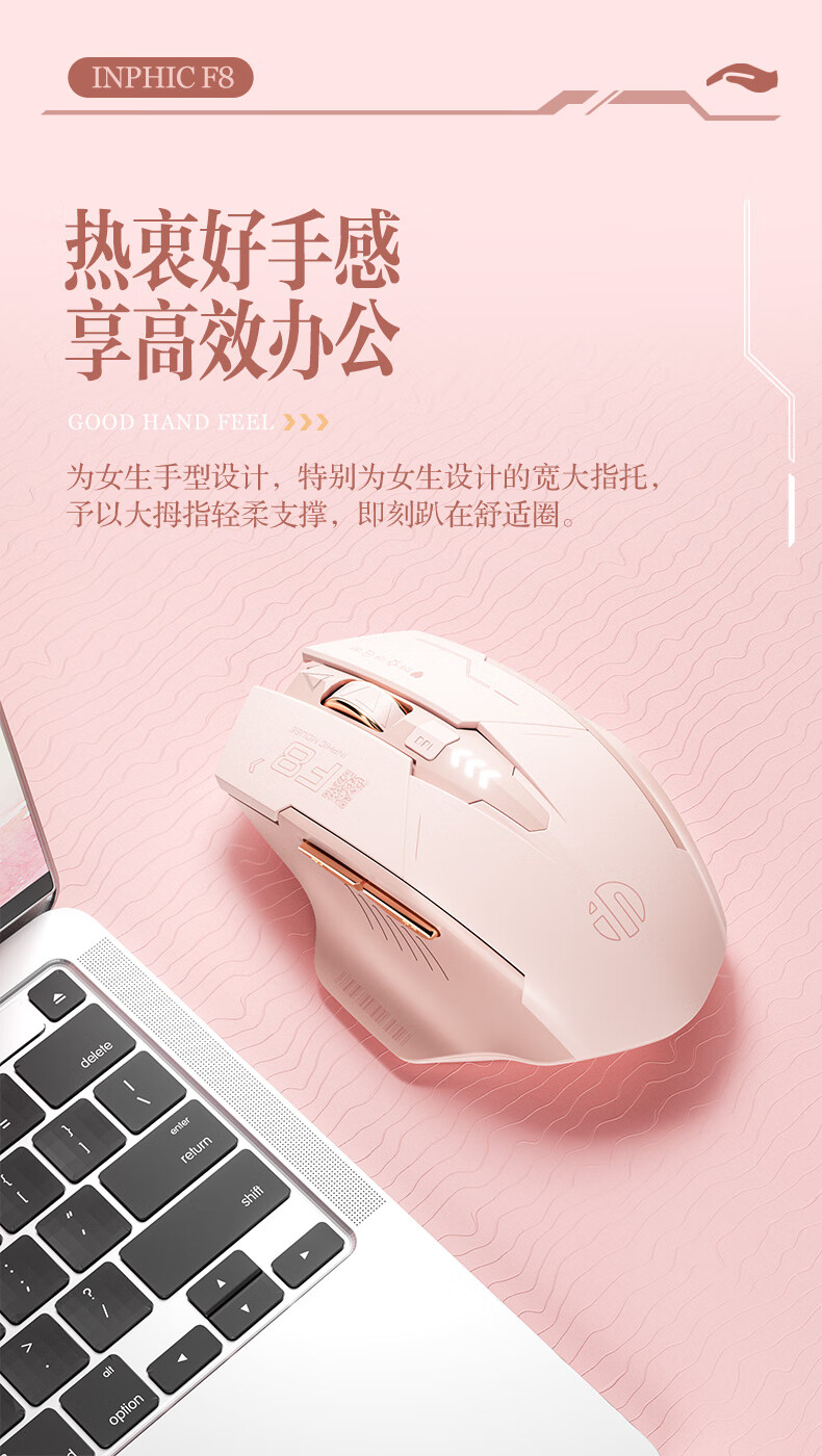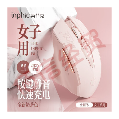 英菲克(INPHIC)F8无线蓝牙鼠标充电女生办公静音便携人体工学适用于惠普华硕华为笔记本电脑ipad平板轻音舒适【无线2.4G+女生高颜值+对称设计】F8奶茶色 自营