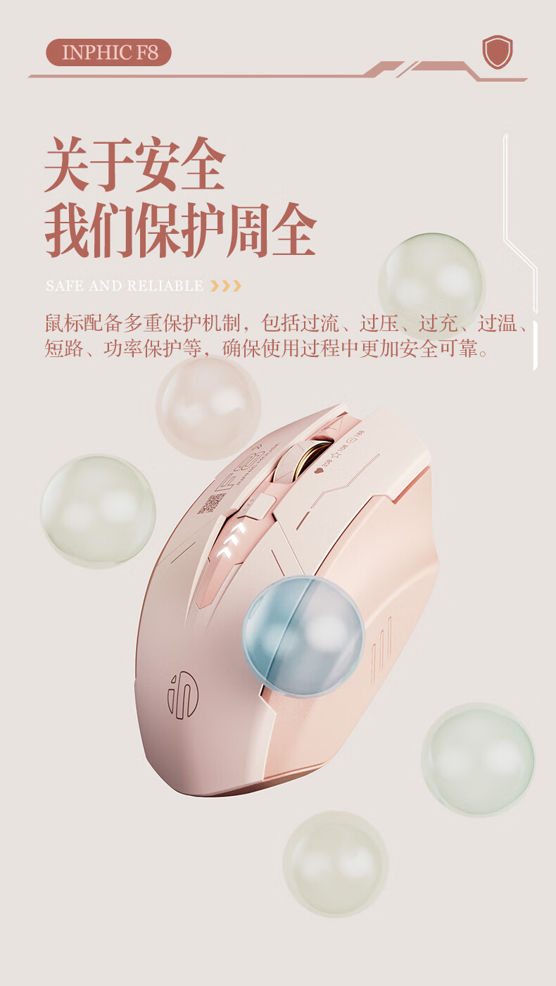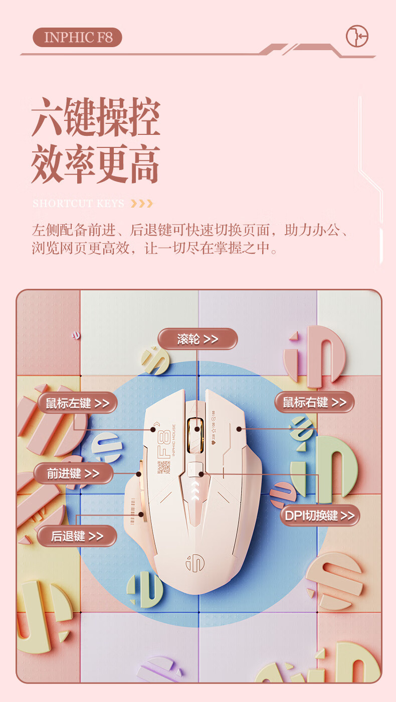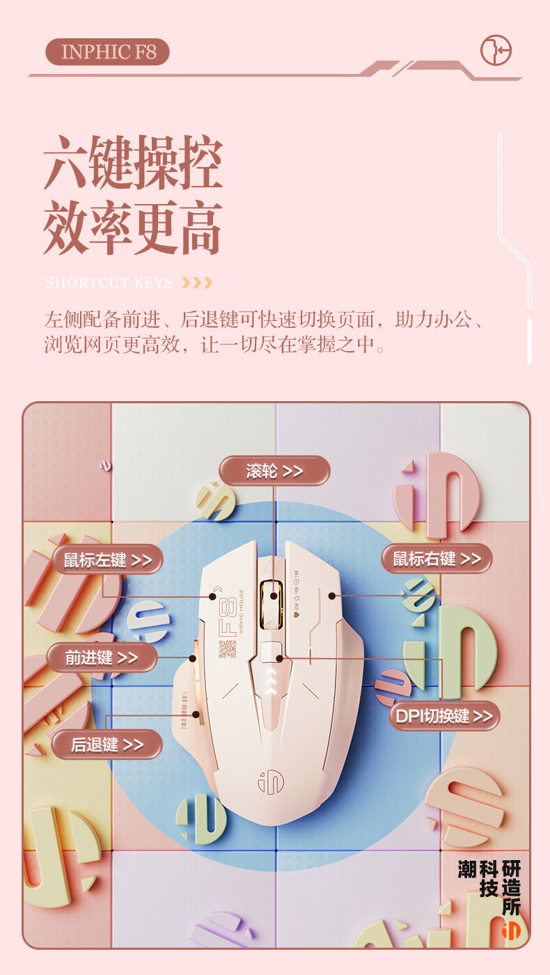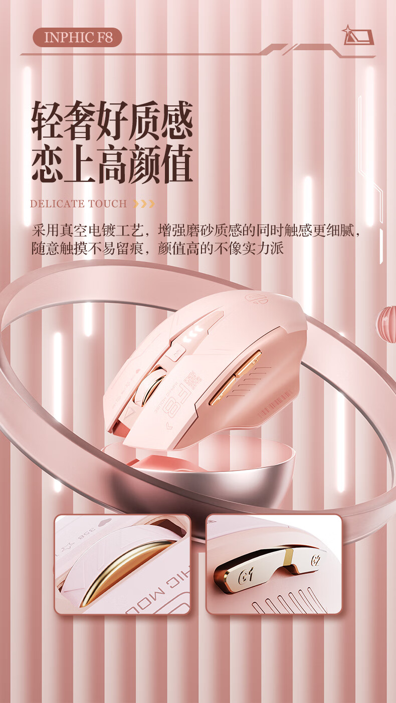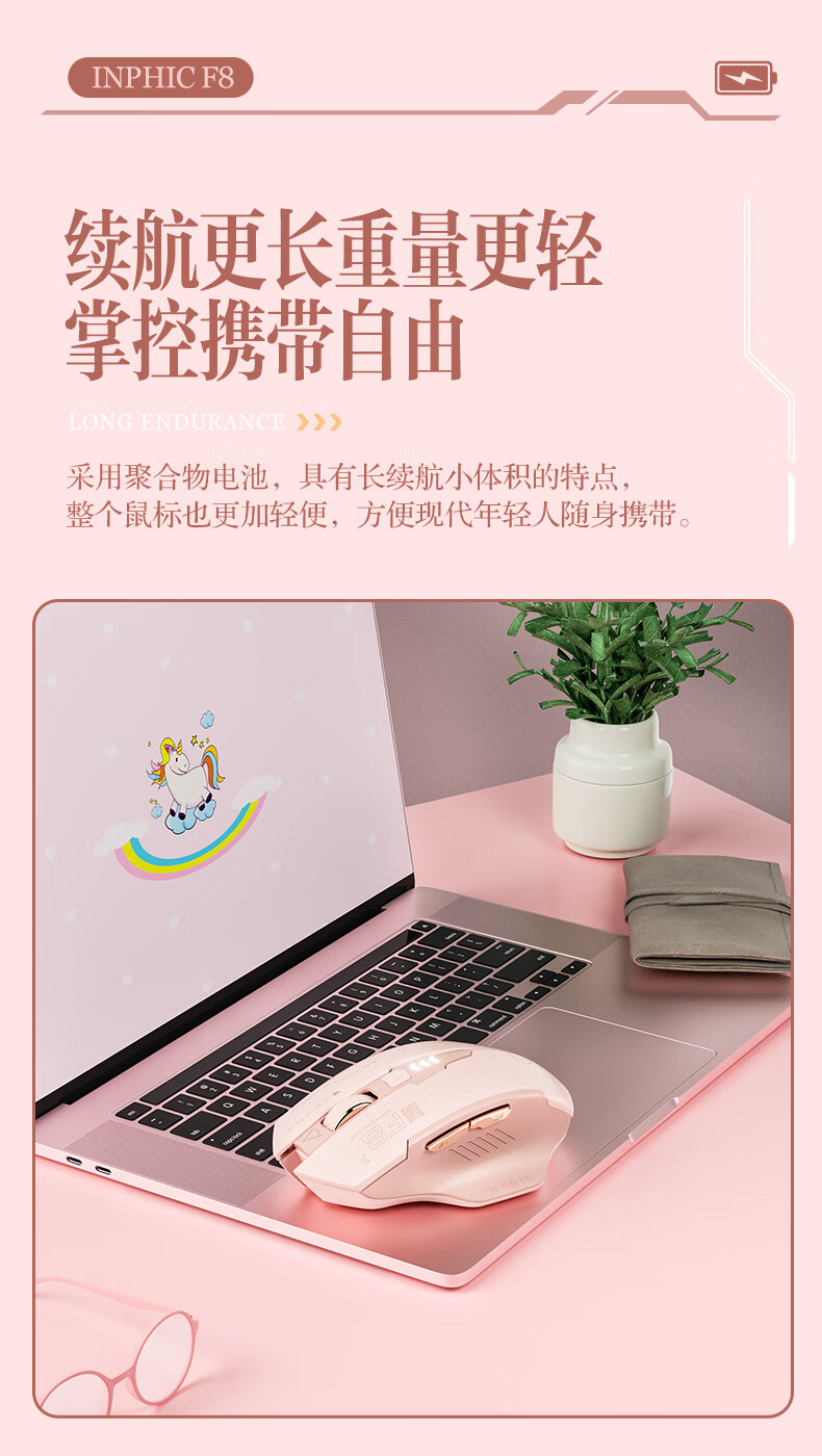 英菲克(INPHIC)F8无线蓝牙鼠标充电女生办公静音便携人体工学适用于惠普华硕华为笔记本电脑ipad平板轻音舒适【无线2.4G+女生高颜值+对称设计】F8奶茶色 自营