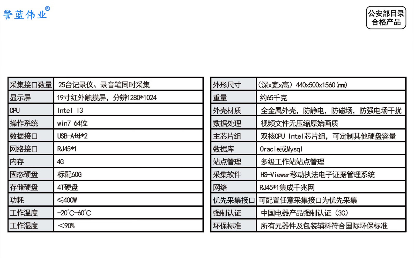警蓝伟业执法记录仪数据采集站W5(ZCS-JLWW5)4T8T16T25口40T 自营