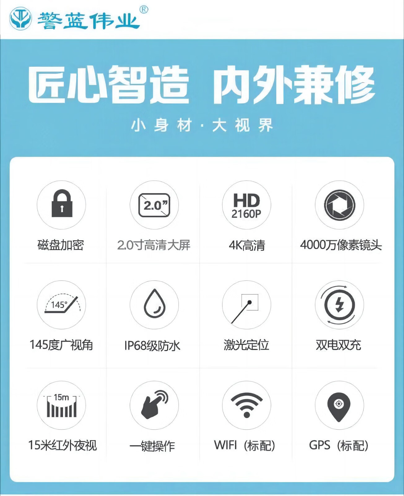 警蓝伟业DSJ-E5CHD增强版工作记录仪4K高清摄像GPS手机APP操控WiFi+GPS版512G 自营