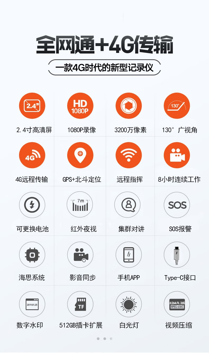 警蓝伟业执法记录仪DSJ-C1高清红外夜视4G/WIFI/实时回传现场工作记录仪512G 自营