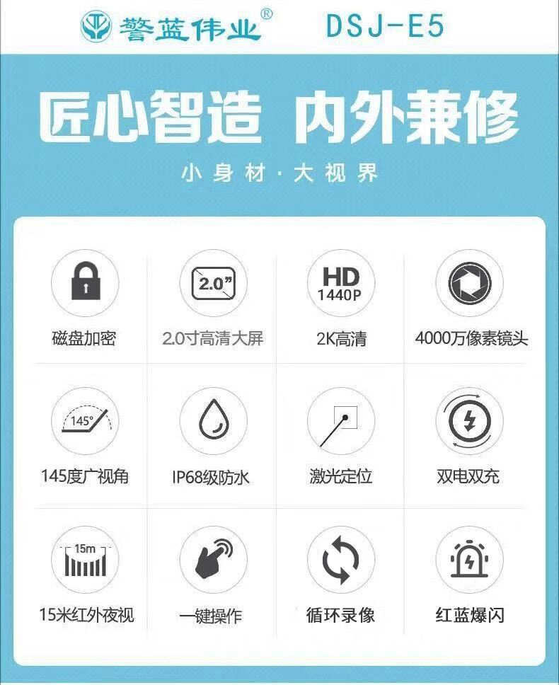 警蓝伟业DSJ-E5执法记录仪2K高清夜视4000万像素12小时持久续航256G 自营