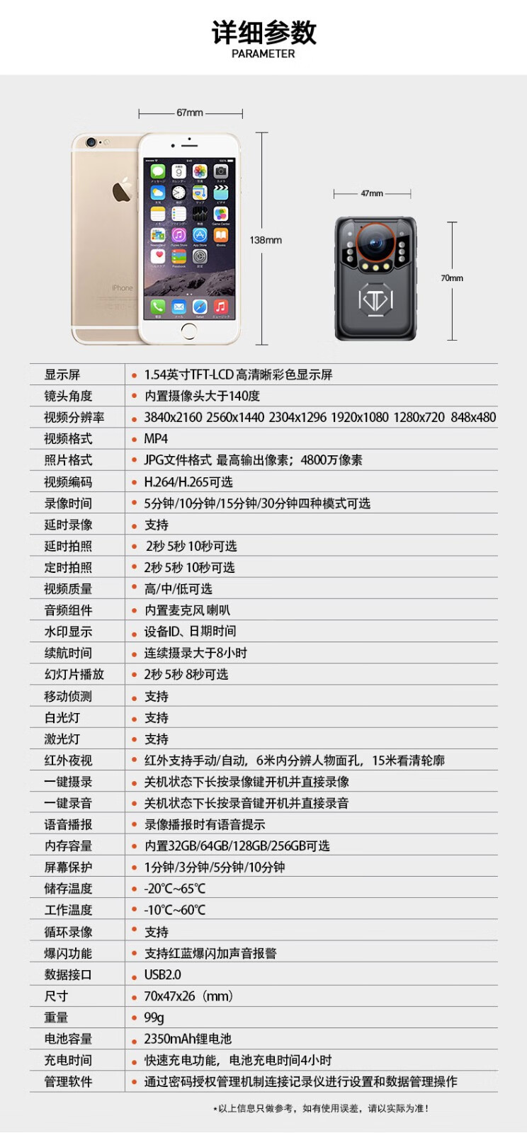 警蓝伟业DSJ-Y5国产版执法记录仪高清夜视4800万像素随身便携记录仪512G 自营