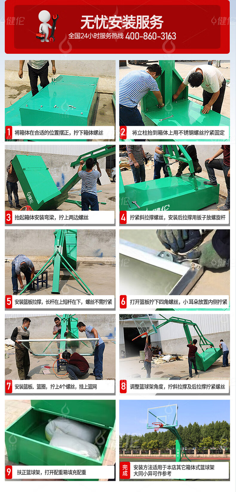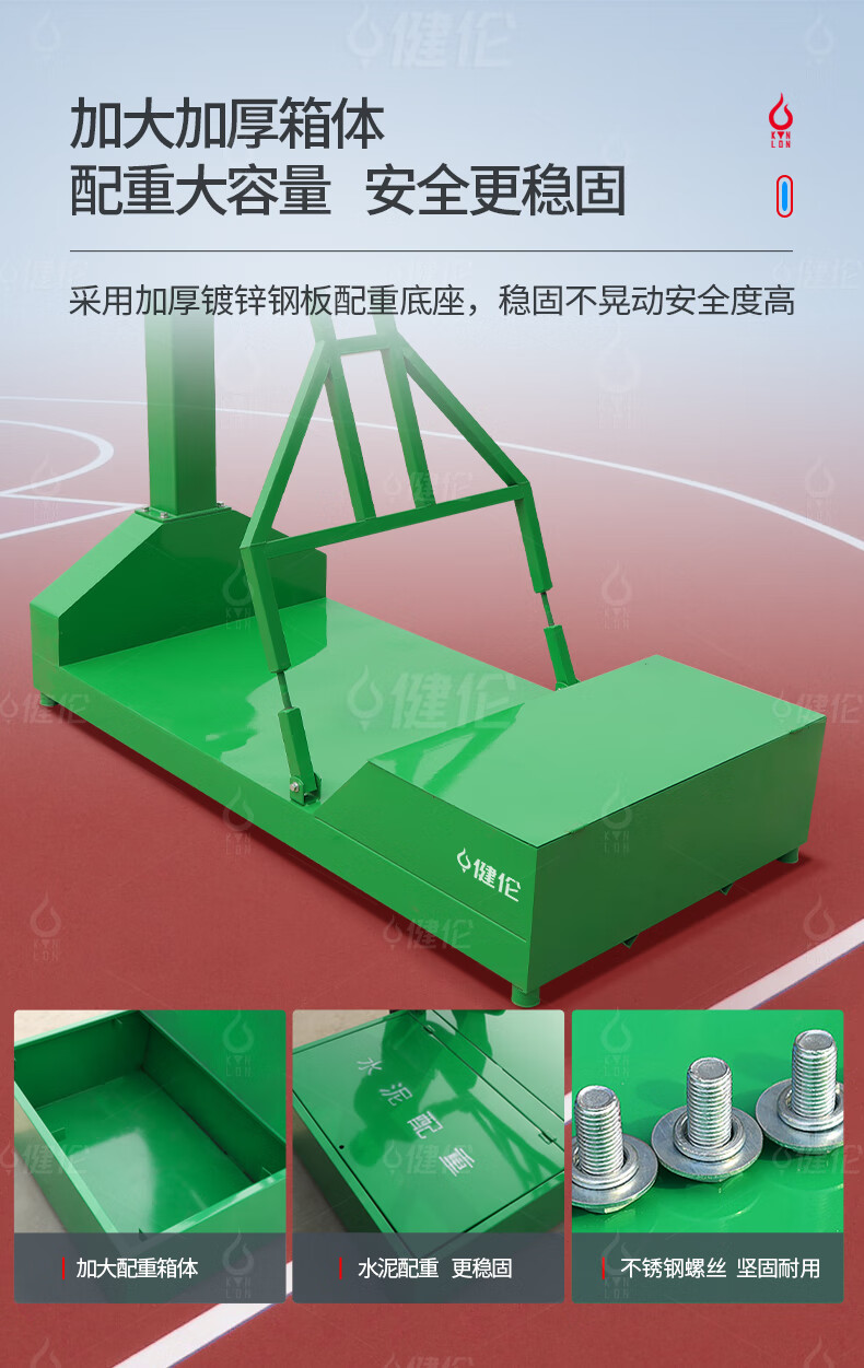 健伦成人平箱篮球架加大加厚箱体户外标准篮球框移动三色1支免费安装