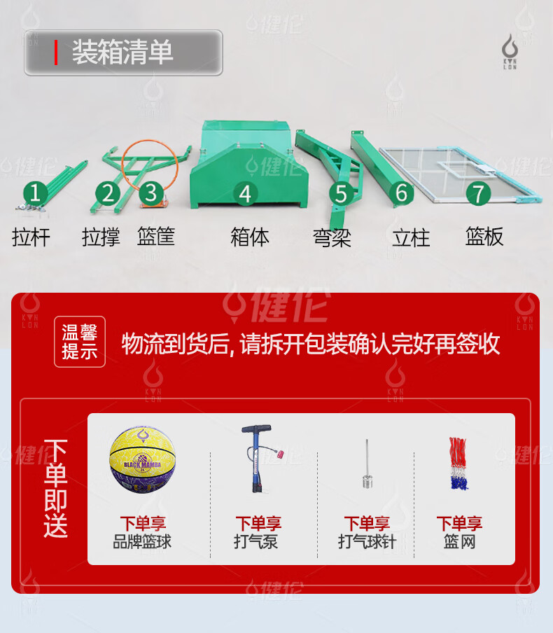 健伦加厚移动篮球架成人标准户外篮球架免费安装