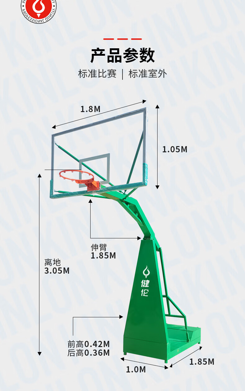 健伦加厚移动篮球架成人标准户外篮球架免费安装