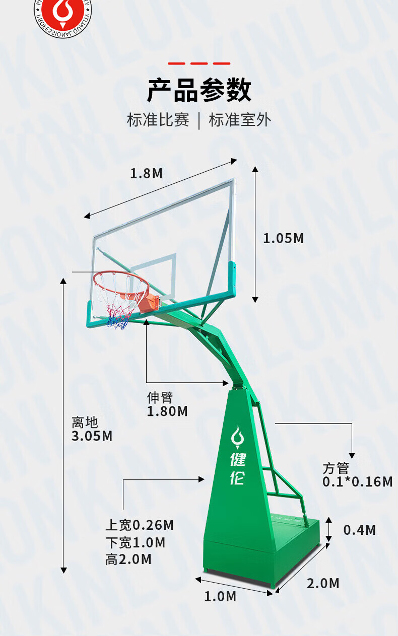 健伦健伦比赛训练专用加厚加粗立柱升级款平箱篮球架/只 自营