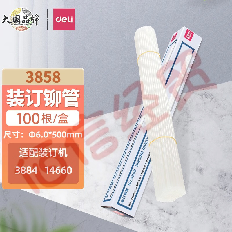 得力(deli)财务装订机专用透明装订铆管耗材系列100支/盒3858铆管Φ6.0*500mm100根/盒 自营