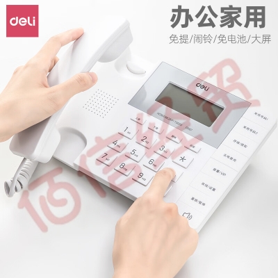 得力固定电话机家用有线座机办公室商务型电话机有绳电话来电显示13560(黑色-白色)斜面屏-可接分机 自营