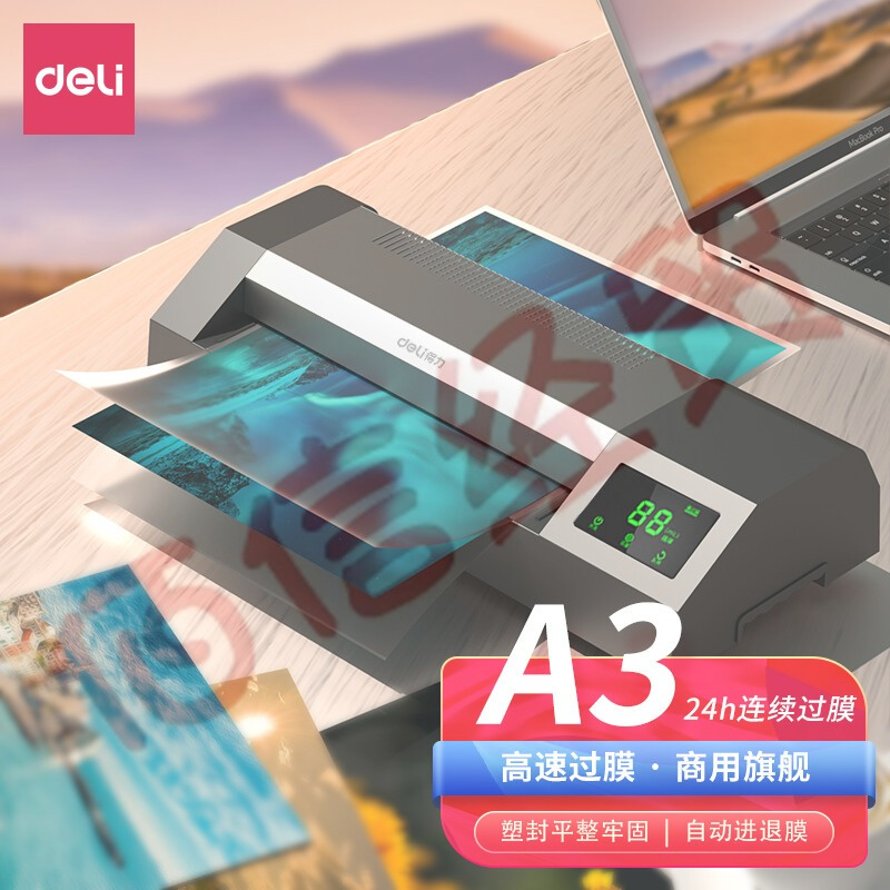 得力(deli)照片塑封机办公家用过塑机相片覆膜机热裱照片文件多尺寸压膜过塑机A3触控面板24h连续过膜14371 自营