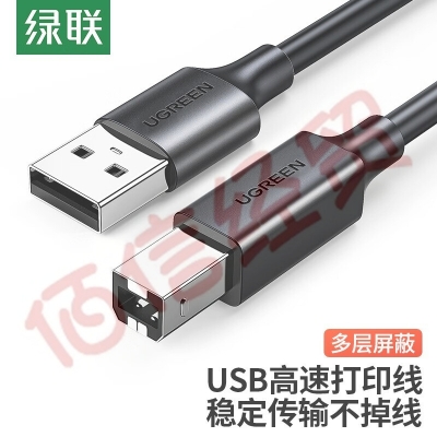 绿联(UGREEN)USB2.0高速打印机线方口打印线【镀镍】2米 自营