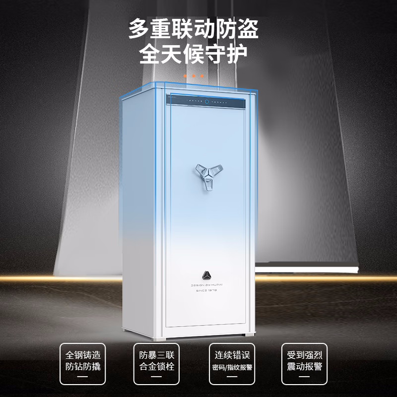 虎牌保险柜家用办公大型指纹密码国标认证豪华高端防盗柜收纳皮革抽屉柜 120cm天穹系列 云锦白 自营