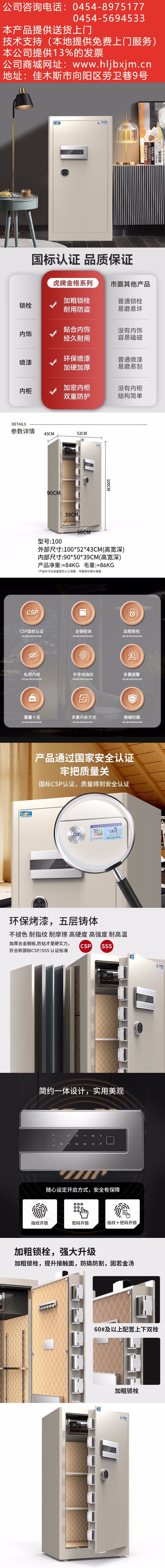 虎牌保险柜家用办公小型国标认证保险箱100cm指纹密码全钢防盗财务专用保密柜 金格系列 象牙白 自营