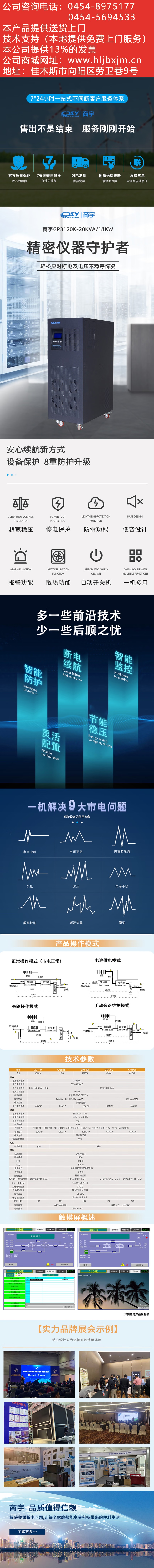 商宇UPS不间断电源在线式GP3120K三进单出20kVA/18kW工频机可外接电池和电池箱 自营