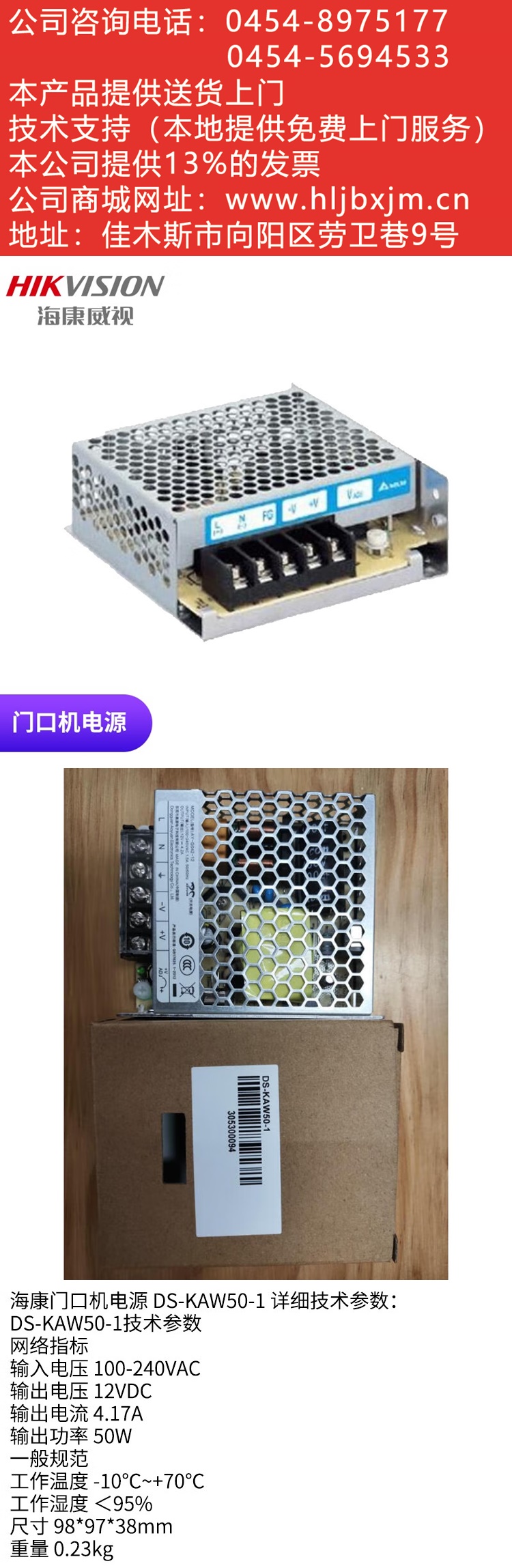 海康威视(HIKVISION)监控门禁专用电源