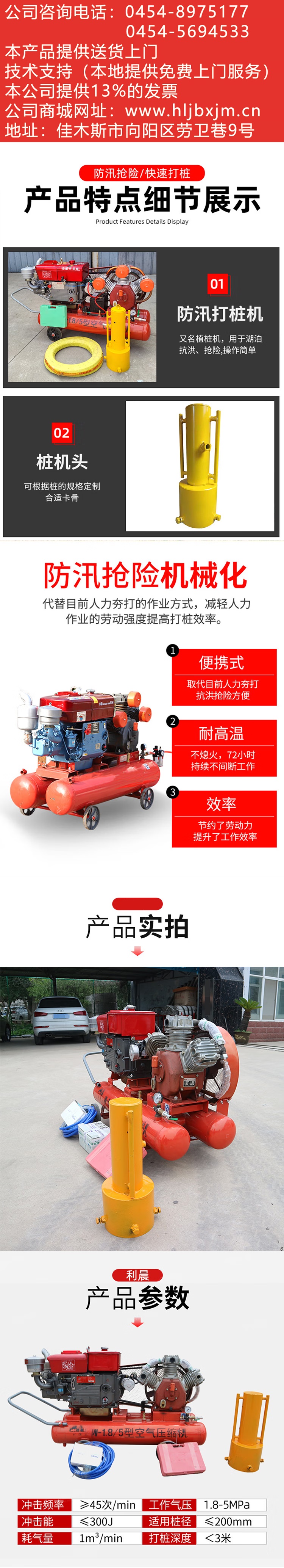 利晨便携式气动柴油打桩机植桩机河堤防汛抗洪抢险光伏建筑防护栏木桩 大型柴油打桩机黄色 自营
