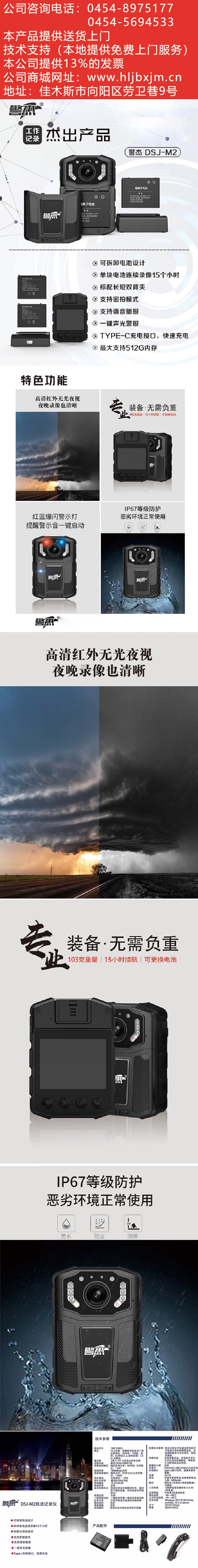 警杰DSJ-M2执法记录仪1296P高清录像红外夜视双电可换电TYPE-C快充 单电续航15h 256GB存储卡 自营