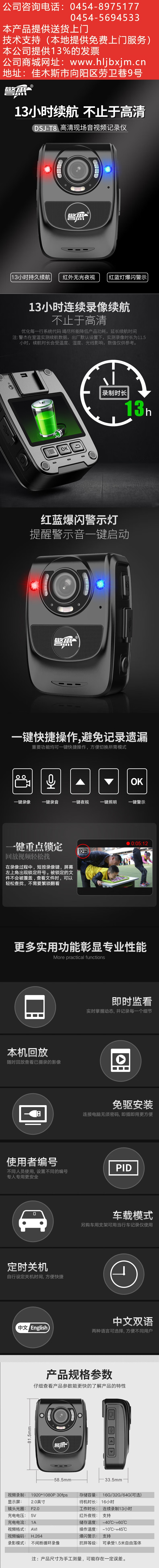 警杰DSJ-T8执法记录仪1080P高清随身运动相机红蓝爆闪现场施工记录仪 本机回访 128GB存储卡 自营