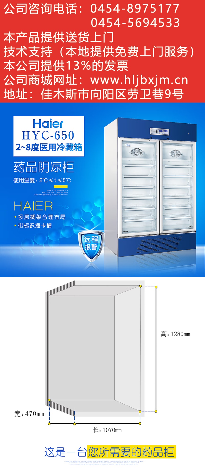 海尔(Haier)药品冷藏箱 2-8℃医药冷藏柜风冷无霜冰柜医药冷柜 药品保鲜柜HYC-650 自营