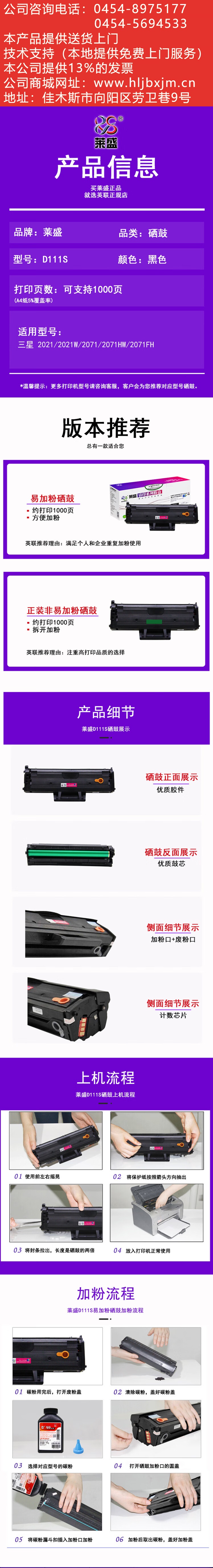 莱盛适用三星D111S 硒鼓适用于2070 自营