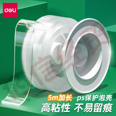 ■得力(deli)30mm*5m纳米强力无痕魔力胶带 随手贴 透明车用无痕双面胶(每盒12个) 33612 可重复使用 自营