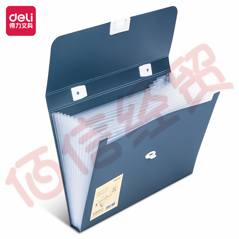 ■得力(deli)13格A4手提风琴包多层文件夹 乐素系列学生试卷收纳 文件保护 深蓝72593 自营
