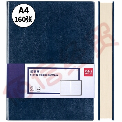 ■得力(deli)A4/160张加大加厚商务皮面本 工作会议记事本笔记本子文具办公用品 蓝色3306 自营