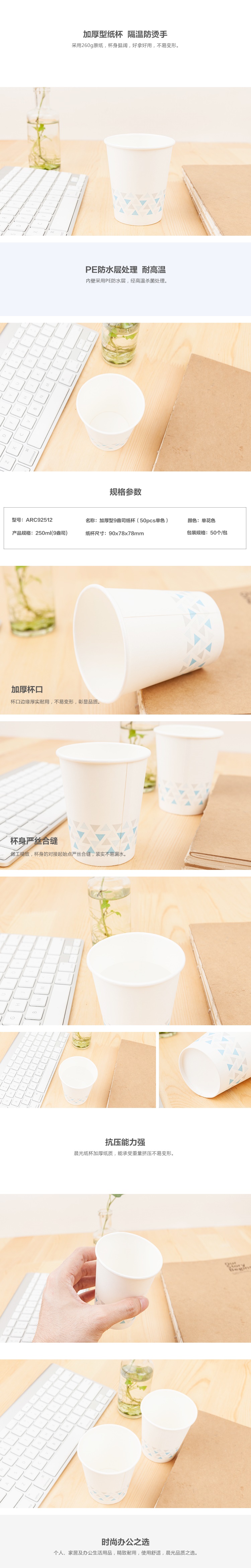 晨光纸杯加厚型9盎司(50pcs单色)ARC92512 自营