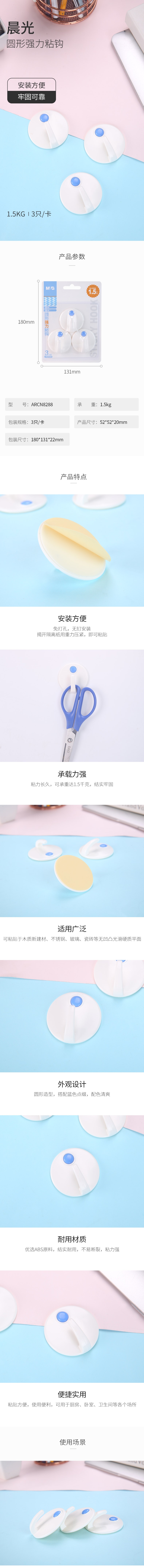 晨光圆形强力粘钩1.5kg(3只装)ARCN8288 自营